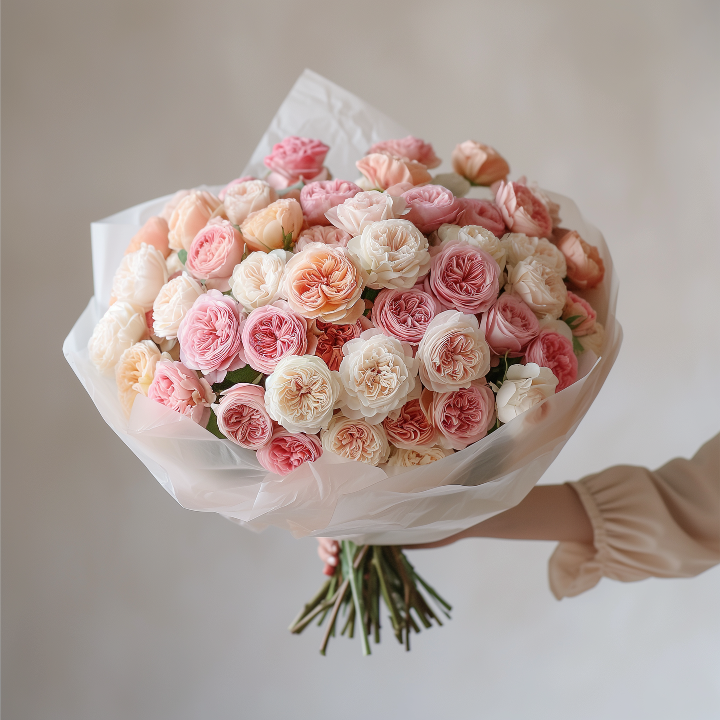 Pivoňkové růže jsou pravým odrazem elegance a nádhery. Jejich bujné květy a široká paleta barev, od jemných pastelových až po intenzivní a syté odstíny, činí dokonalou volbou pro sestavení kytic, které vyjadřují hluboké emoce a sofistikovanost. Tento typ květu se vyznačuje jedinečnou krásou a může být hvězdou jakékoli floristické aranže.