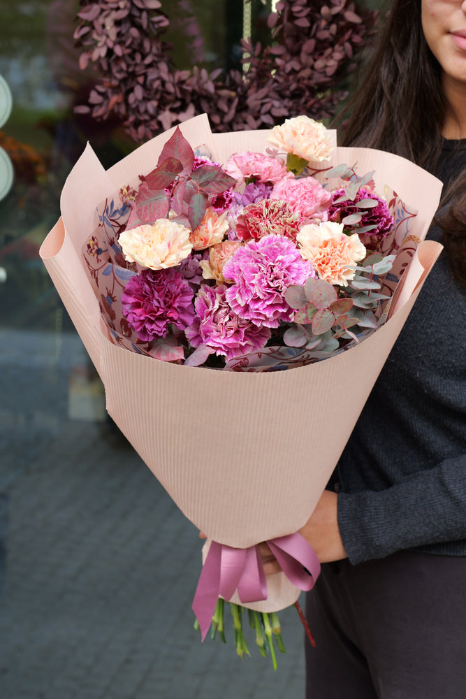 In summer – fresh meadow flowers, in winter – arrangements enriched with fresh greenery and fragrant pine.